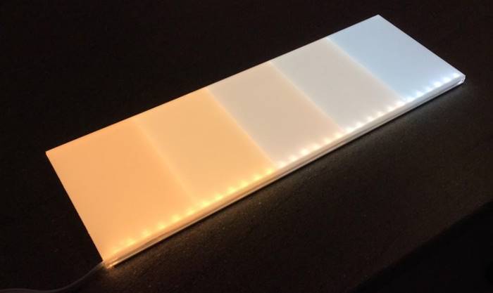 Für die Projektierung von LED-Flächenleuchten bieten wir ein Musterset aller lieferbaren Farbtemperaturen. Eine Anpassung an bereits vorhandene Lichtfarben ist so möglich, ebenso die Farbbstimmung für die Durchleuchtung von Lichtbildern (Backlightdruck, Glasdruck).